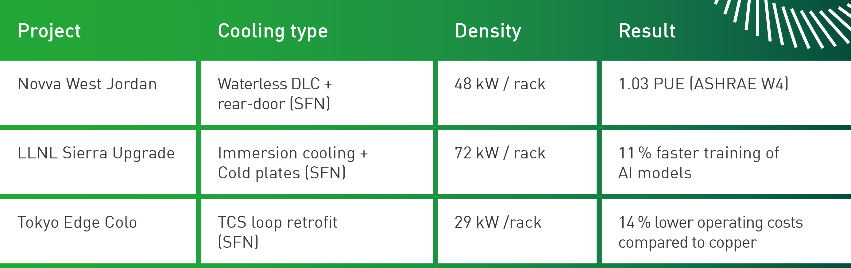 Reliability is the top priority for operators of critical IT infrastructures. The requirements for redundancy, scalability and energy efficiency are therefore particularly high. Cooling systems must continue to guarantee sufficient cooling in the event of maintenance or malfunction (N+1 or 2N redundancy) and at the same time be able to grow with the expanding data centre. Modern liquid cooling offers decisive advantages here: it not only enables the efficient dissipation of high heat outputs, but also helps to improve power usage effectiveness (PUE) through optimised operating parameters - a critical factor for sustainable operating concepts and the reduction of operating costs.