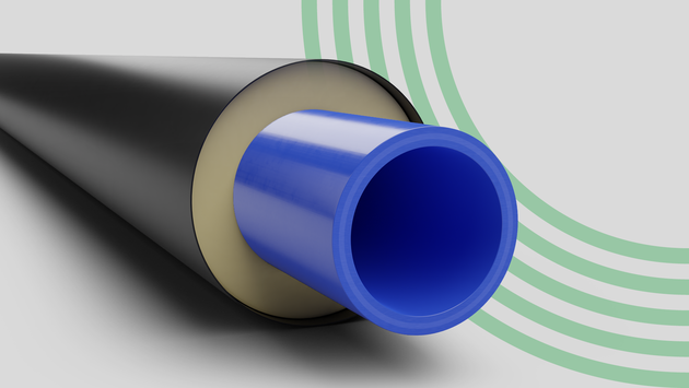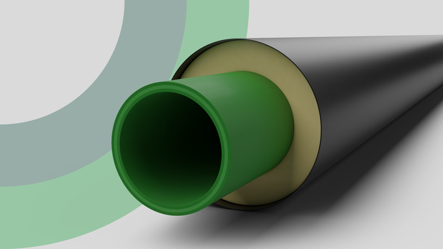 The aquatherm energy pipework system consists of pre-insulated polypropylene pipes, fittings and joints. All service pipes and fittings used for aquatherm energy are made of the material Fusiolen PP-R/PP-RCT. These are insulated with PUR foam and enclosed in an HDPE casing pipe.