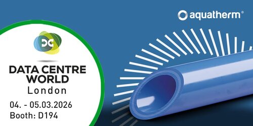 The focus will be on the corrosion-free aquatherm blue piping system made of PP-RCT, which was specially developed to meet the requirements of modern data centres. It enables precise temperature control, protects IT infrastructure from deposits and corrosion, and supports sustainable concepts such as free cooling and heat recovery. This helps reduce energy consumption and extends the service life of cooling systems.