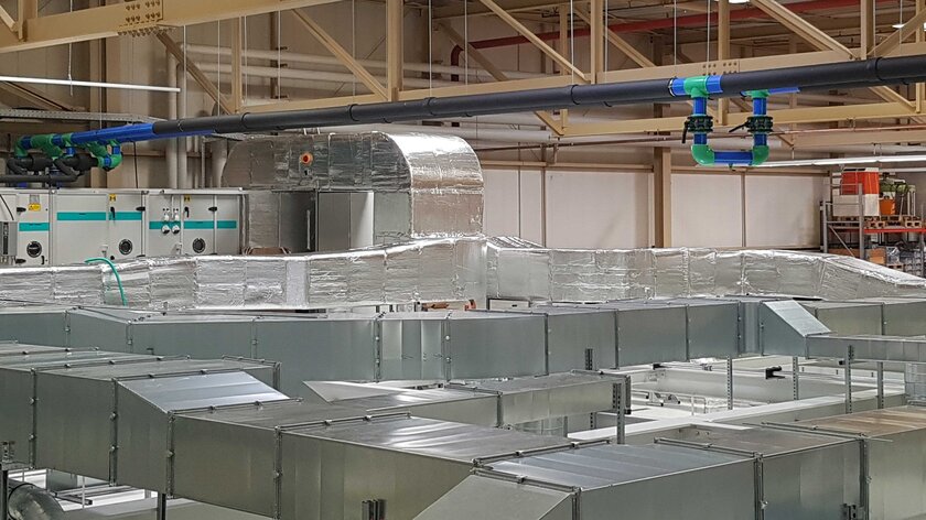 In various building complexes, a total of about 5000 metres of aquatherm blue fibre-reinforced piping system was used in dimensions from 32 to 450 mm. "In aquatherm, we have found a partner we can trust in all areas of piping," explains Markus Egetenmeier, Head of Facility Services at VARTA. "The material is excellently suited for the use of the refrigeration and vacuum lines, and the choice of dimensioning up to 500 mm is ideal for us."