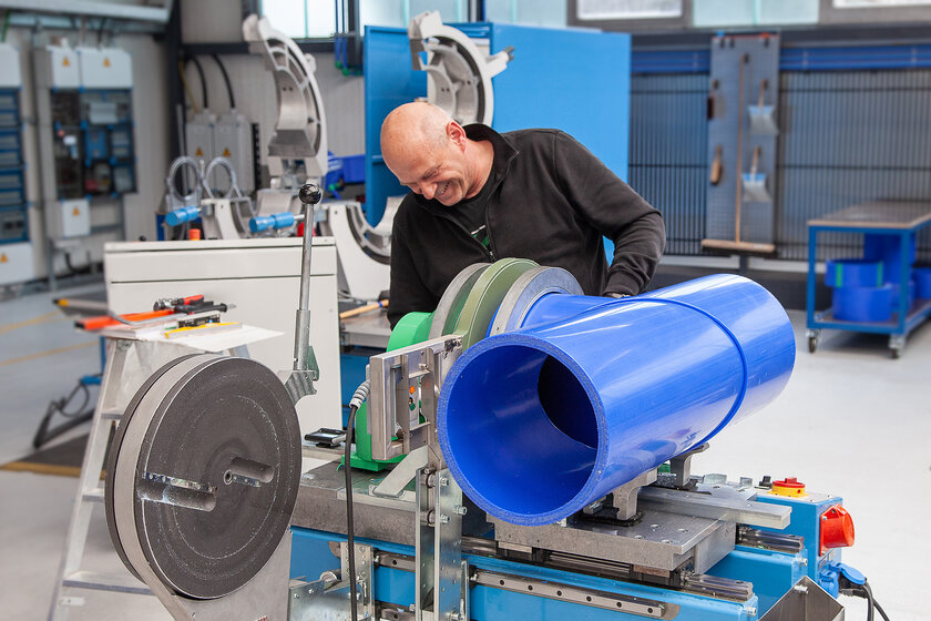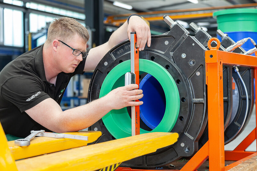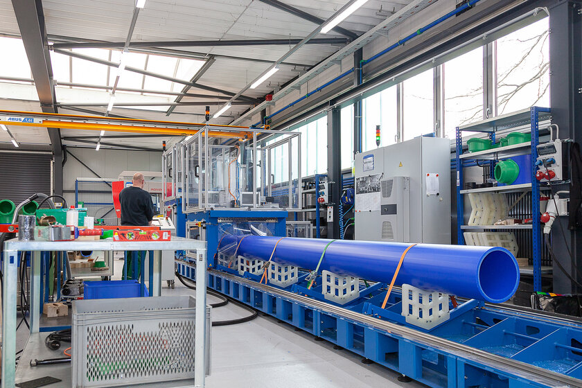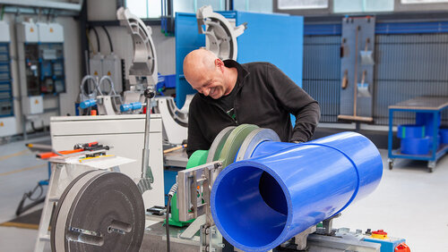 The piping systems, manifolds and special components are then manufactured by our 25-member team in our prefabrication department on a production area of approx. 1600 sqm. After completion, the prefabricated elements are subjected to a tightness and function test by aquatherm before they leave the factory. This means aquatherm can offer a guarantee of 10 years with a sum insured of 20 million euros per case of damage.