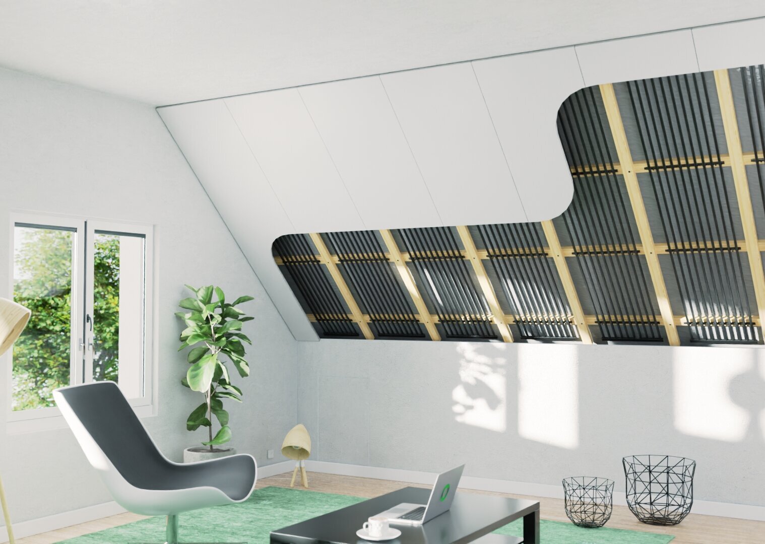 aquatherm black es un sistema de calefacción y refrigeración de superficies multipremiado. Versátil en su uso, fabricado en un diseño de registro compacto y equipado con tecnología preparada para el futuro: estas son algunas de las características clave de aquatherm black. Lo que lo hace especial: Puede instalarse tanto en el techo como en paredes y suelos. En función de las necesidades, la temperatura de la superficie de los elementos puede ajustarse unos grados por encima o por debajo de la temperatura ambiente deseada. La energía radiante proporciona un agradable calor o refrigeración sin molestas corrientes de aire ni remolinos de polvo.