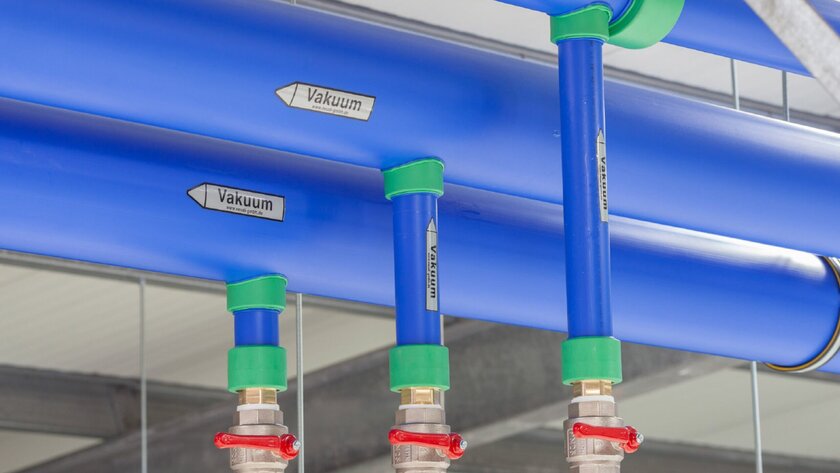 Das neue Vakuumsystem machte ein neues Rohrleitungssystem nötig. Statt wie bisher auf Edelstahl setzte Hamper nach einer Empfehlung von Busch Vacuum Solutions auf ein Produkt aus dem Kunststoff Polypropylen (PP): Installiert wurde aquatherm blue in Größen zwischen 160 und 200 mm.