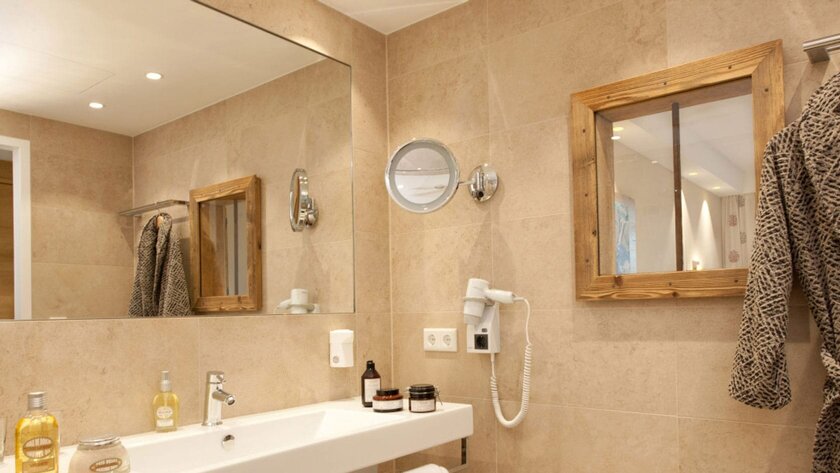 Im „Poststadl“ wurden insgesamt 740 Quadratmeter schwarze Register passgenau in die Decken der Zimmer sowie die Wände der Badezimmer eingebracht. Der Einsatz im Badezimmer dient erneut dem Komfort der Gäste: aquatherm black wurde zur Erwärmung und Trocknung von Handtüchern und Bademänteln an jeweils zwei Stellen in die Wände integriert.