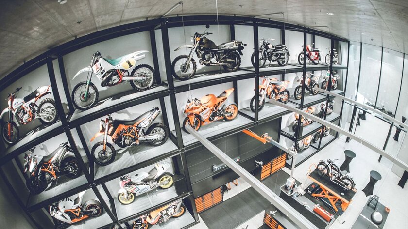 Auf 2600 Quadratmetern und drei Ebenen lässt sich in einer hochmodernen Ausstellung die Faszination von KTM hautnah erleben – und das alles mit interaktiven Displays, virtuellen Rundgängen und jeder Menge Originalmaschinen. Für die Sicherheit der Besucher sorgt ein Sprinklersystem, das sich aufgrund seiner besonderen Eigenschaften unsichtbar in die spektakuläre Architektur des Gebäudes einfügt.