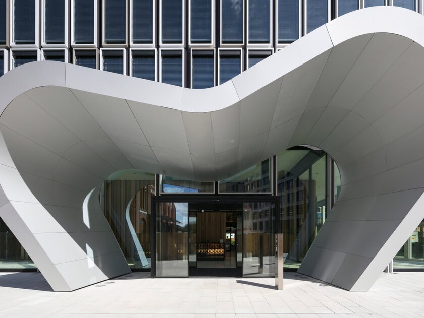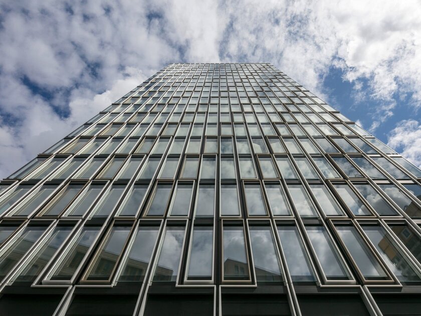Dementsprechend passt der Spreeturm ins Konzept: Ein Großteil der Gebäudefläche wird als Büroräume genutzt, in Teilbereichen des Erdgeschosses ist eine gastronomische Nutzung geplant. Die Räumlichkeiten bieten nicht nur einen Blick auf den Fluss Spree, sondern auch eine lichtdurchflutete und repräsentative Arbeitsumgebung. Möglich macht dies unter anderem die besondere Gestaltung des Hochhauses. Das Team von Eike Becker Architekten aus Berlin entwickelte ein quadratisches Gebäude mit einer Fassade aus ein- bis dreigeschossigen Aluminiumblechen, die neben dem wie eine Skulptur anmutenden Dach des Haupteingangs ein Blickfang des Gebäudes ist. Der Entwickler des Spreeturm ist die Sechsundvierzigste Verwaltungsgesellschaft DWI Grundbesitz mbH, die den Spreeturm an den Immobilien-Investment- und Asset Manager NAS Invest GmbH verkauft hat.